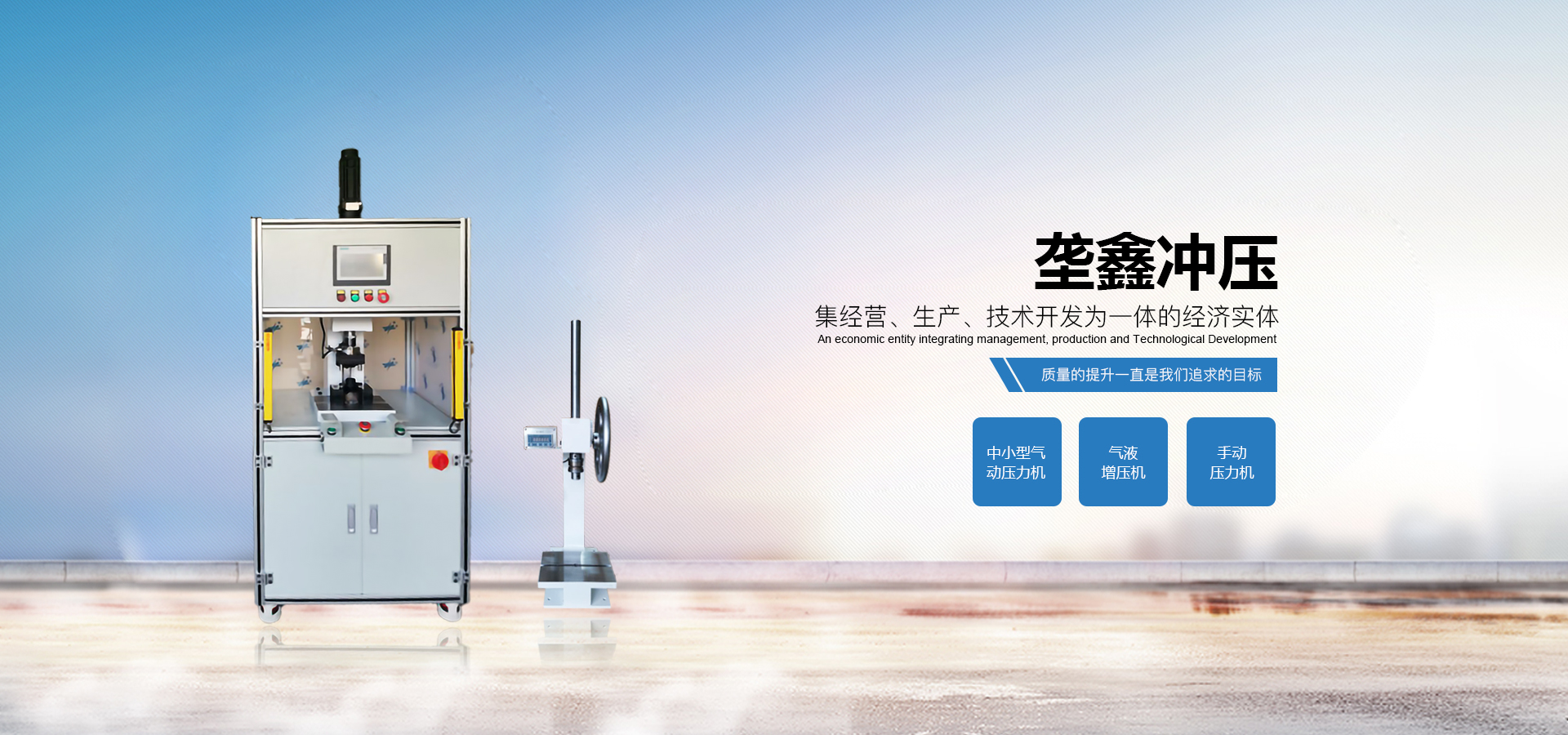 煙臺(tái)壟鑫沖壓設(shè)備有限公司是集經(jīng)營(yíng)、生產(chǎn)、技術(shù)開(kāi)發(fā)為一體的經(jīng)濟(jì)實(shí)體,專業(yè)致力于中小型壓力機(jī)、非標(biāo)壓力機(jī)的設(shè)計(jì)開(kāi)發(fā)和制造。在引進(jìn)德國(guó)、日本等國(guó)家先進(jìn)的鉚壓控制技術(shù)及機(jī)器設(shè)計(jì)理念的基礎(chǔ)上,結(jié)合相關(guān)行業(yè)的實(shí)際需要,開(kāi)發(fā)出各種臺(tái)式、落地式氣動(dòng)壓力機(jī)、手動(dòng)壓力機(jī)、氣液增壓機(jī)、氣液增力缸、旋鉚機(jī)、無(wú)鉚釘鉚接機(jī)等鉚接設(shè)備。產(chǎn)品應(yīng)用領(lǐng)域廣泛,適用于汽車零件、電子、電器、家電、包裝、五金、等行業(yè)。公司視質(zhì)量為生命,并一貫遵循對(duì)每一臺(tái)產(chǎn)品負(fù)責(zé),對(duì)每一位用戶負(fù)責(zé),真誠(chéng)為您服務(wù)。
